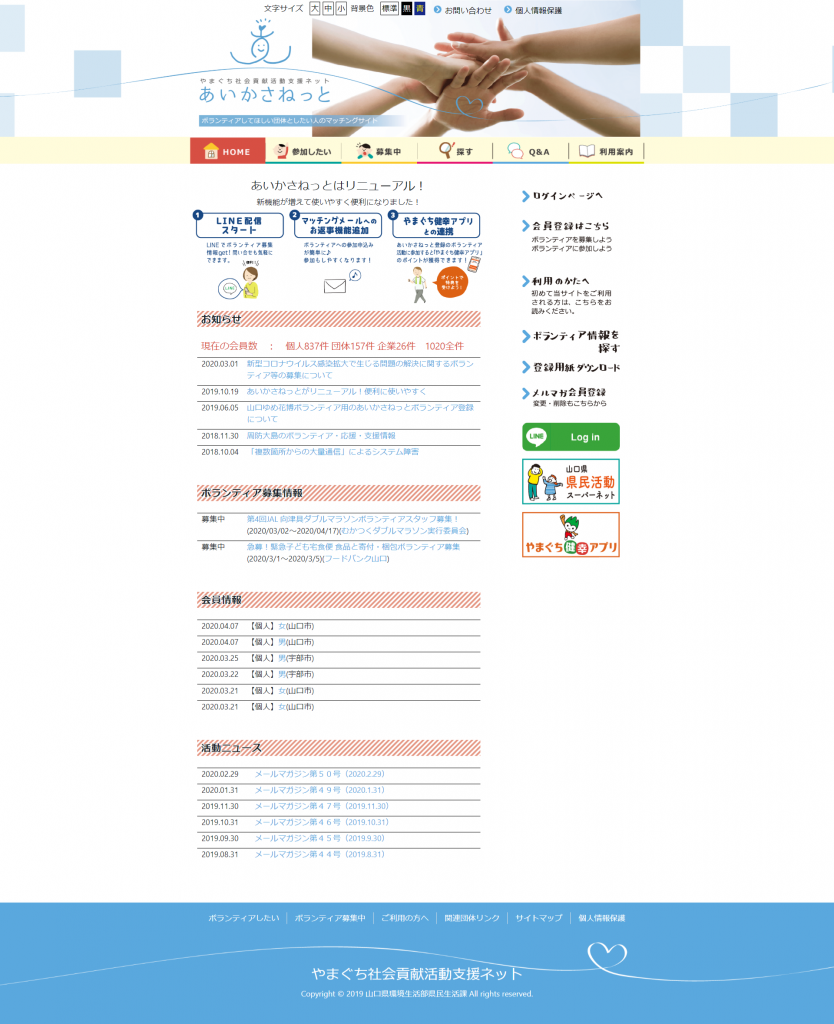 非営利セクターICT支援 2020 4/08 2020.04.08 2020.04.14 Webサイト企画制作や運用保守・ソフトウェア導入支援等。令和元年は、山口県内以外にも新潟・高知・福岡など県外のNPO法人案件も対応しました。 ICT支援 ICT支援 Salesforce等CRM導入 山口県内事業者ICT支援・WEB企画制作 関連記事 Salesforce等CRM導入 2020.04.03 山口県内事業者ICT支援・WEB企画制作 2020.04.08 令和7年度視覚障害者向けスマホ講習会のご案内 山口市・周南市・防府市・萩市開催(総務省事業) 2025.07.07 令和6年度視覚障害者向けスマホ講習会のご案内(総務省事業) 2024.09.01